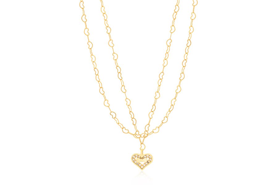 GARGANTILHA BANHADA EM OURO, CRISTAL FUSION RETANGULAR 10x8mm, ELO 1,50mm LARGURA, 40cm COMPRIMENTO E EXTENSOR 10cm COMPRIMENTO