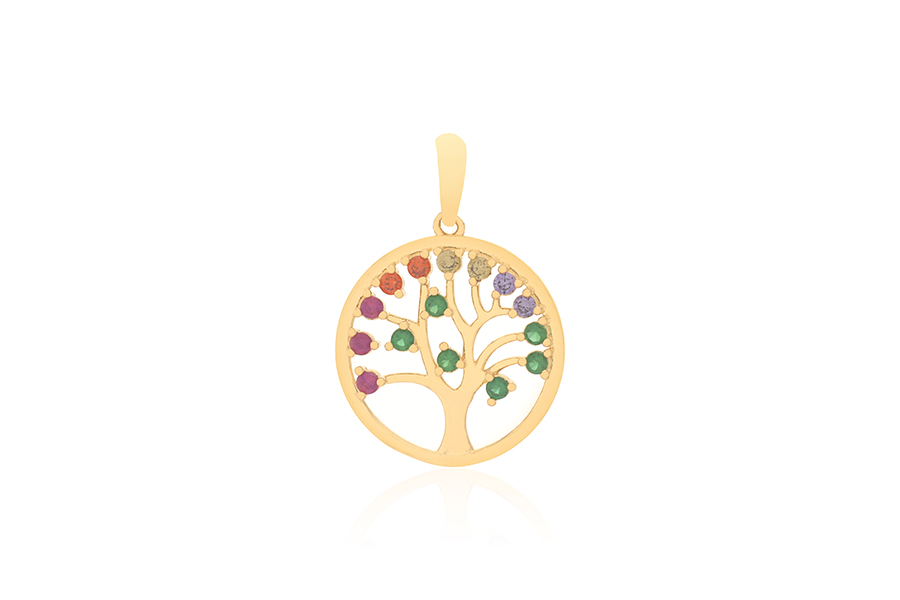 PINGENTE BANHADO EM OURO, CRISTAL REDONDO 35mm, SÃO MIGUEL