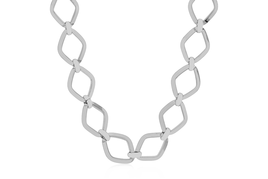 CORRENTE BANHADA EM PRATA LEVE, ELO LACRAIA LAMINADA 3mm LARGURA, 43cm COMPRIMENTO E PESO 6,00g