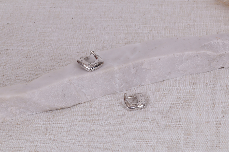 BRINCO EM PRATA, QUADRADO VAZADO COM 1 LADO CRAVEJADO, 5mm