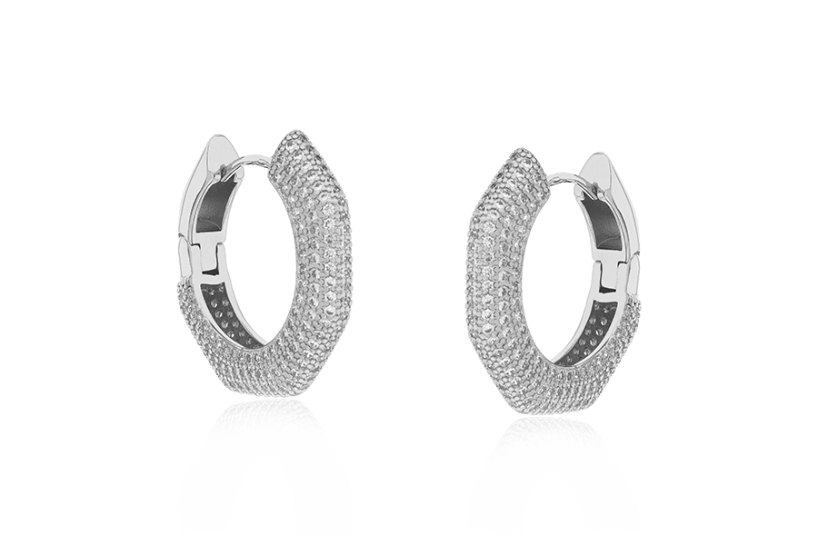 BRINCO BANHADO EM RÓDIO BRANCO, 7mm DIÂMETRO COM 14 ZIRCÔNIAS