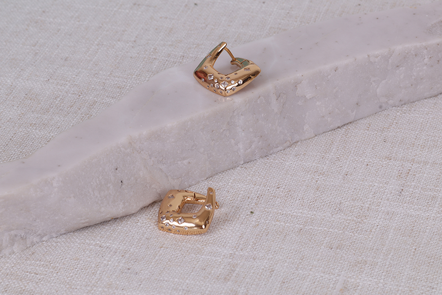 BRINCO BANHADO EM OURO, CRISTAL QUADRADO 16mm