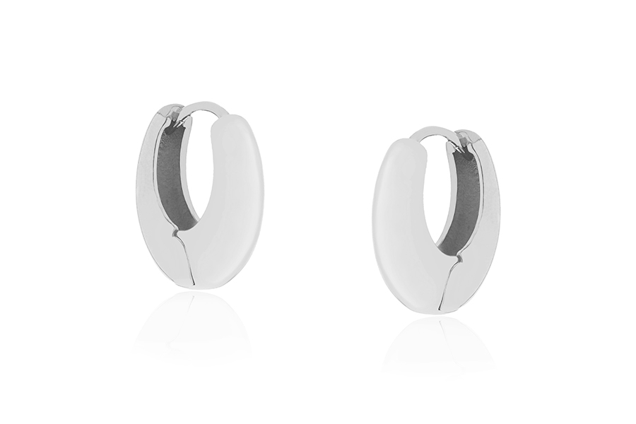 BRINCO EM PRATA, ARGOLA OVAL 25mm ALTURA, COM BANHO DE RÓDIO BRANCO, COLEÇÃO AURA