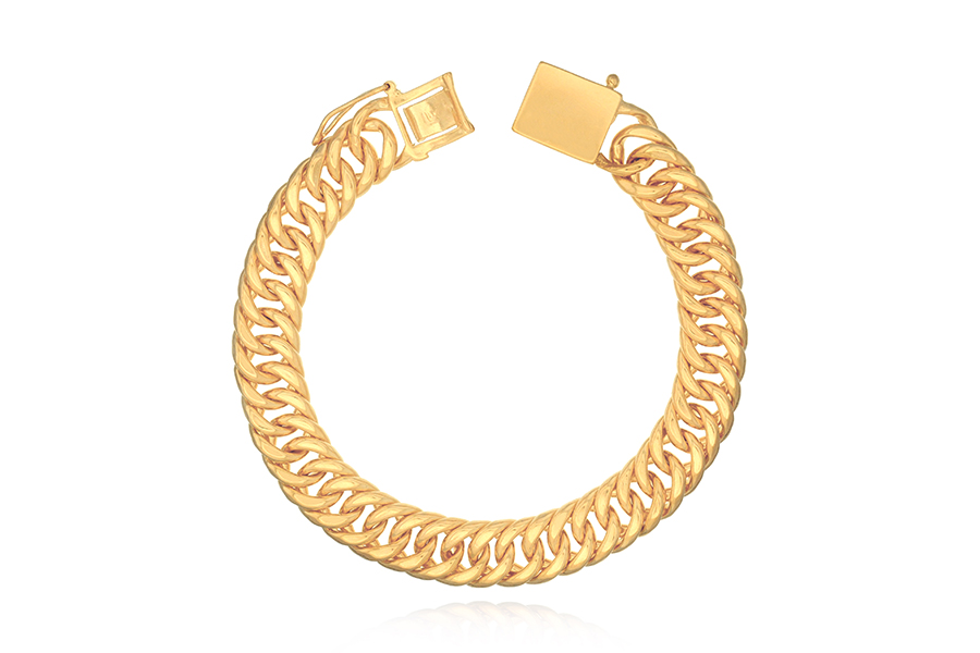 PULSEIRA BANHADA EM OURO, ELO CARTIER 4,30x2,10mm, 17cm COMPRIMENTO, EXTENSOR 5cm COMPRIMENTO, 10 MANDAMENTOS