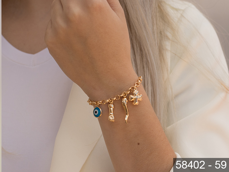 PULSEIRA BANHADA EM OURO, ELO CARTIER 4,30x2,10mm, 17cm COMPRIMENTO, EXTENSOR 5cm COMPRIMENTO, 10 MANDAMENTOS