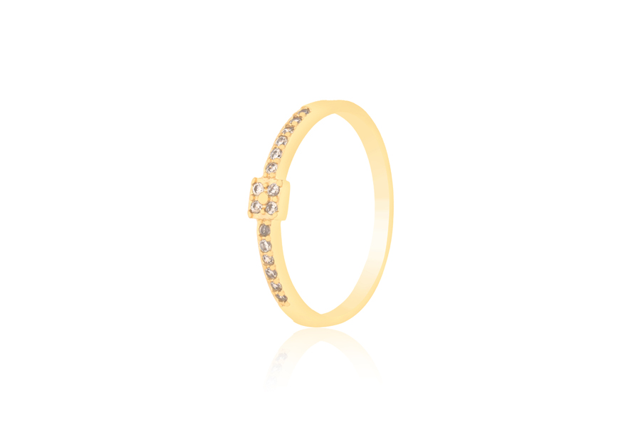 ANEL BANHADO EM OURO, ALIANÇA COM 11 ZIRCÔNIAS 4,50mm