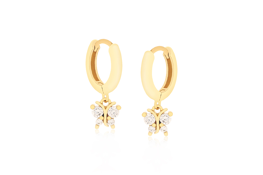 BRINCO EM PRATA, BORBOLETA COM 1 ZIRCÔNIA 4,60mm ALTURA, EM FILIGRANA