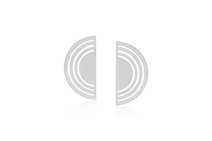 BRINCO EM PRATA, MEIA ESFERA CRAVEJADA COM GALERIA, 6mm DIÂMETRO
