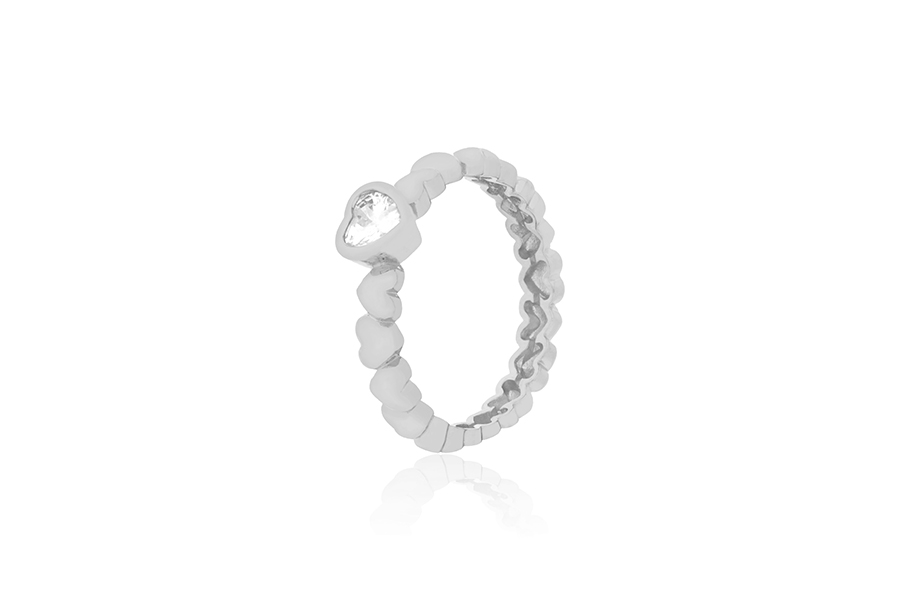 ANEL BANHADO EM OURO CORAÇÃO 7mm ALTURA E ZIRCÔNIAS BRANCAS OU COLORIDAS