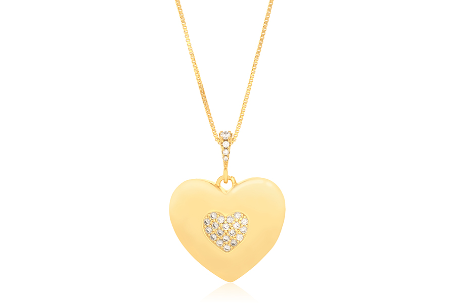 CHOKER EM PRATA, CORAÇÃO 4,60mm ALTURA, COM 1 ZIRCÔNIA CENTRAL, ELO CADEADO, 35+5cm COMPRIMENTO