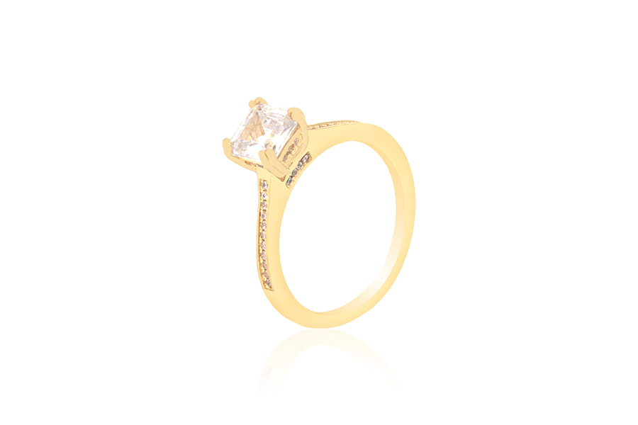 ANEL BANHADO EM OURO, SOLITÁRIO, ZIRCÔNIA QUADRADA 8mm, COM 235 ZIRCÔNIAS