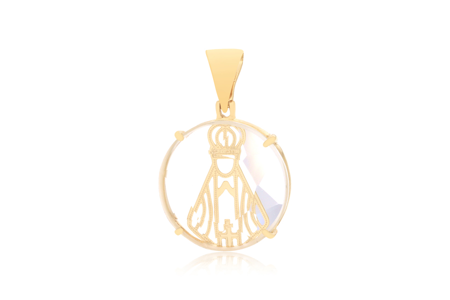 PINGENTE BANHADO EM OURO, CRISTAL REDONDO 35mm, SÃO MIGUEL
