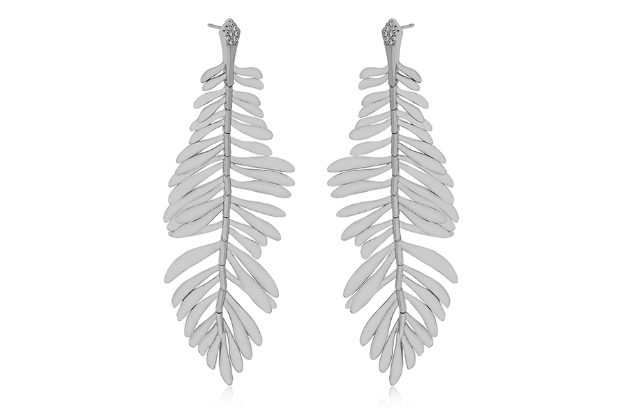 BRINCO BANHADO EM RÓDIO BRANCO, NAVETE 7,50mm COMPRIMENTO
