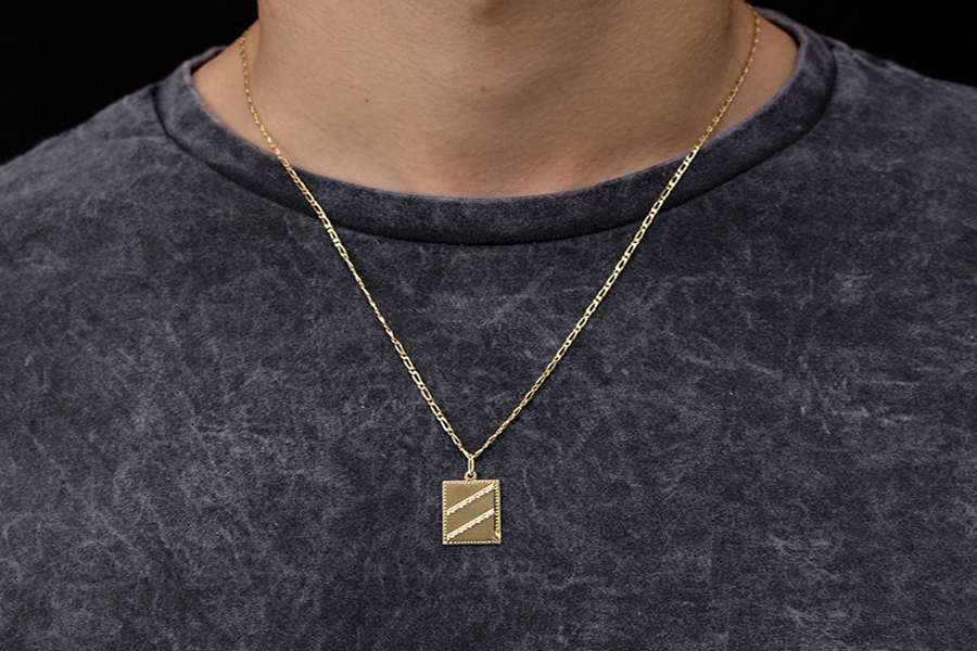 PINGENTE BANHADO EM OURO, QUADRADO, ZIRCÔNIAS BAGUETE