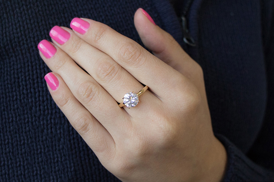 ANEL EM PRATA, SOLITÁRIO REDONDO 5mm DIÂMETRO, 6 GARRAS