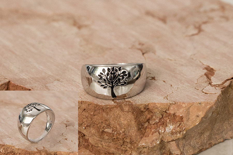ANEL BANHADO EM RÓDIO BRANCO, 21mm LARGURA