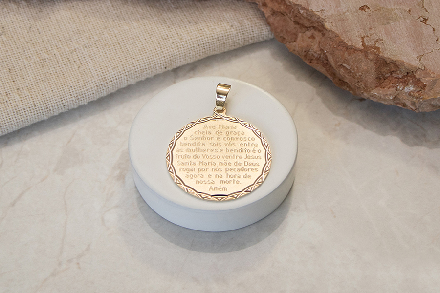 PINGENTE BANHADO EM OURO PAI NOSSO 26mm DIÂMETRO E CONTRA ARGOLA COM 18 ZIRCÔNIAS