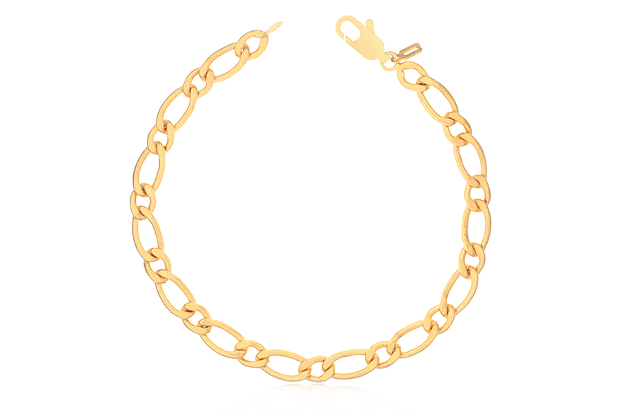 PULSEIRA BANHADA EM OURO, CORRENTE ELO PORTUGUÊS 2,50mm, 17cm COMPRIMENTO, EXTENSOR 5cm COMPRIMENTO E PESO 2,20g