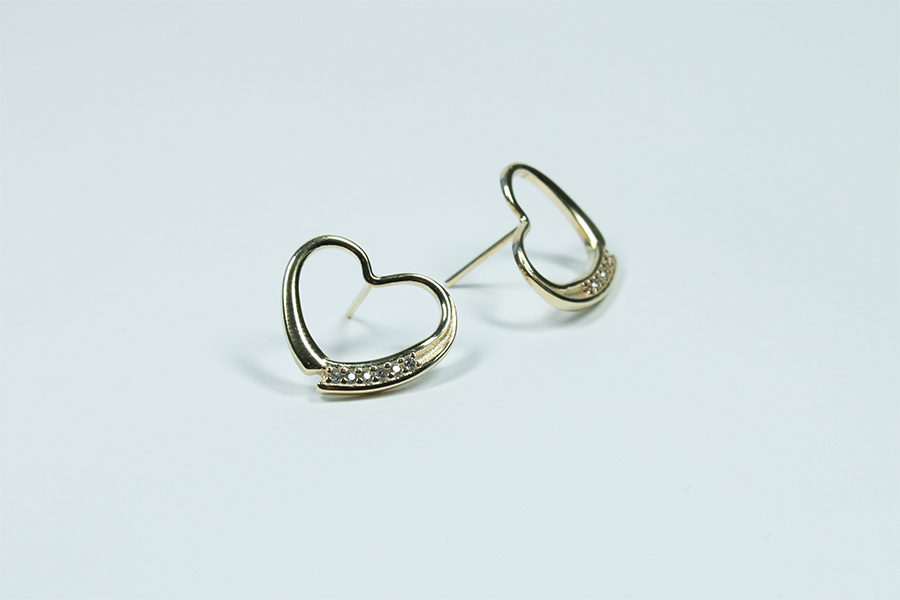 BRINCO EM PRATA, CORAÇÃO VAZADO E CRAVEJADO 14,50mm ALTURA