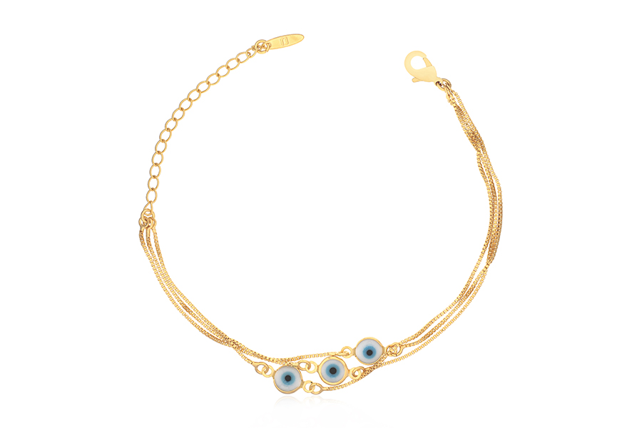 PULSEIRA BANHADA EM RÓDIO BRANCO, ELO 1,50mm LARGURA, OLHO GREGO, 16cm COMPRIMENTO E EXTENSOR 5cm COMPRIMENTO