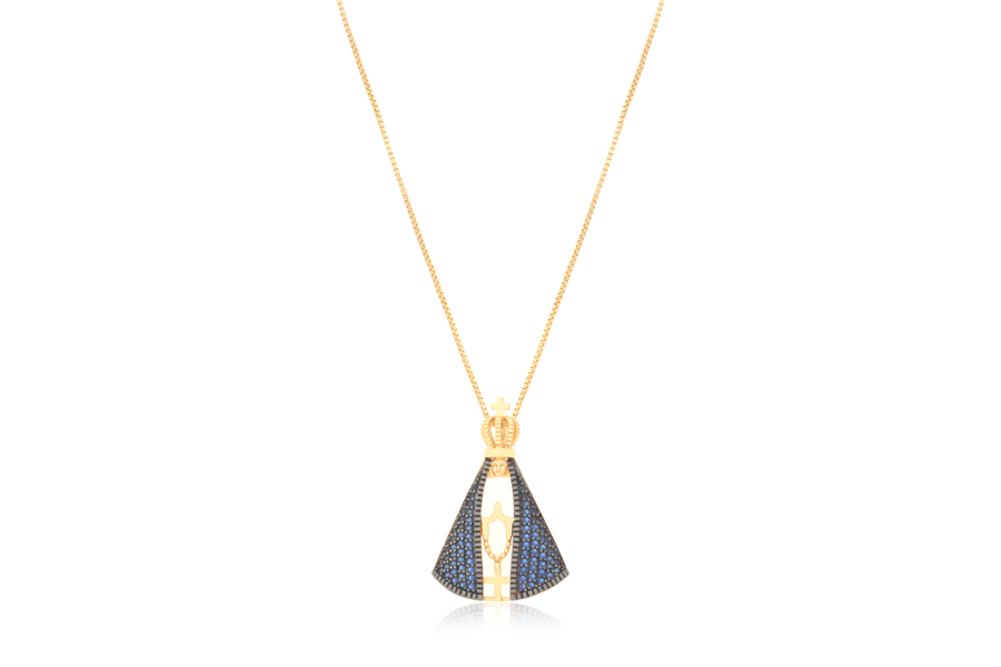 GARGANTILHA BANHADA EM OURO, ESCAPULÁRIO SIMPLES, APARECIDA, VENEZIANA 0,80mm, LINHA TRADICIONAL