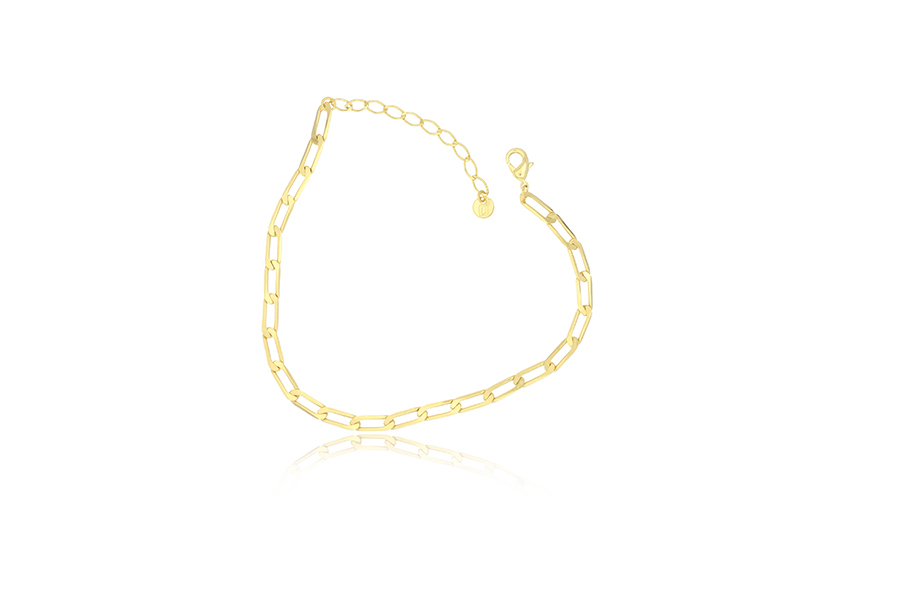 TORNOZELEIRA BANHADA EM OURO, CORRENTE ELO PIASTRINE 2,40mm LARGURA, 23cm COMPRIMENTO