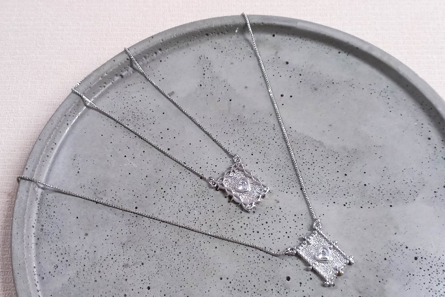 GARGANTILHA EM PRATA, ELO PORTUGUÊS 1,40mm, 40cm, EXTENSOR 5cm, CORAÇÃO 15mm LARGURA, COM BANHO DE RÓDIO BRANCO, COLEÇÃO AURA