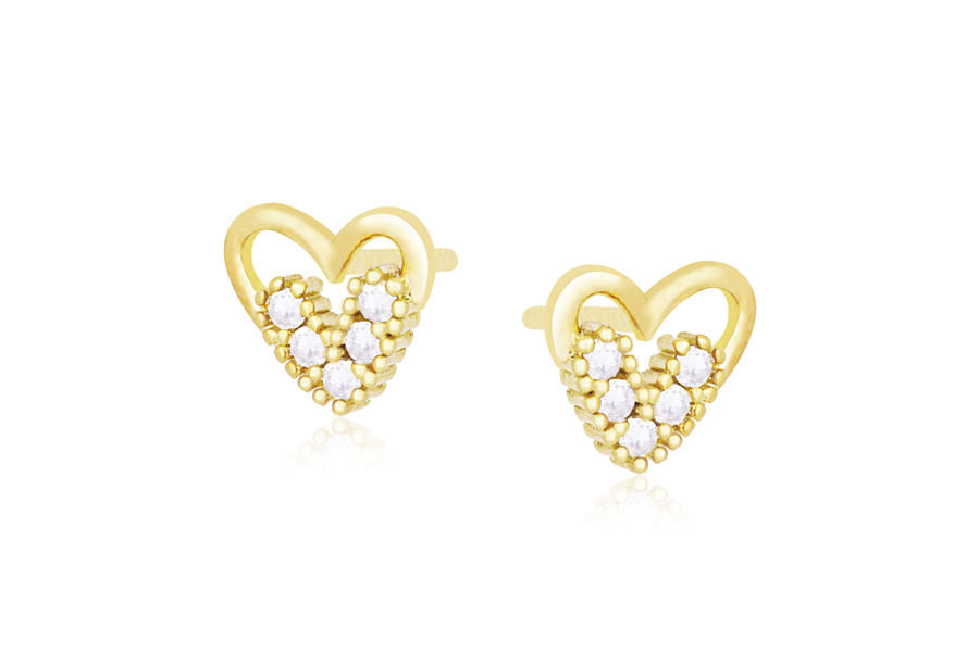 BRINCO BANHADO EM OURO, CORAÇÃO E PONTO DE LUZ 6mm ALTURA