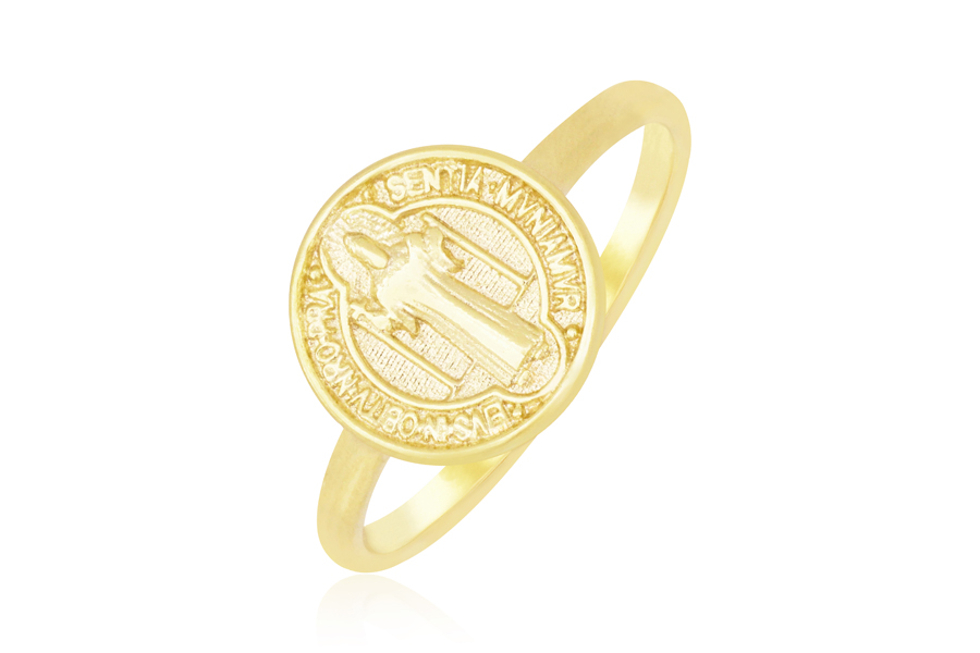 ANEL EM PRATA, NOSSA SENHORA APARECIDA, CRUZ, COM BANHO DE RÓDIO BRANCO