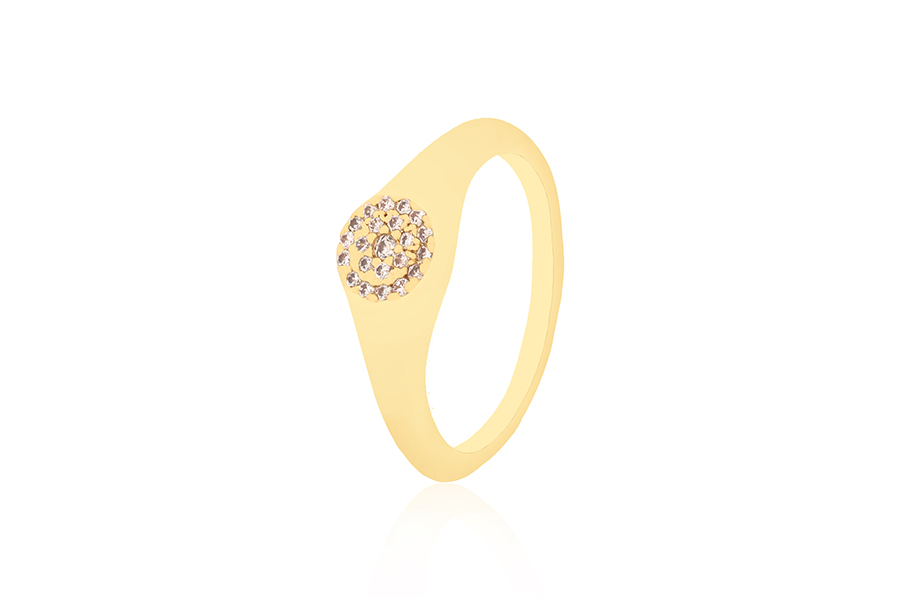ANEL BANHADO EM OURO, SOLITÁRIO 5mm COM 22 ZIRCÔNIAS