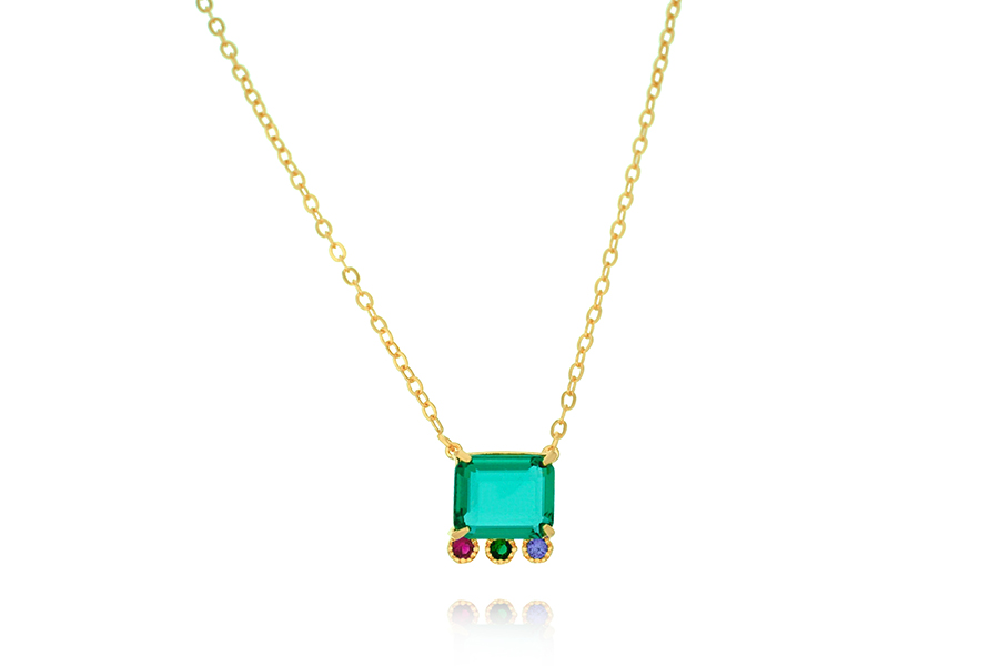 GARGANTILHA BANHADA EM OURO, ELO VENEZIANA 0,80mm, 45cm COMPRIMENTO, EXTENSOR 5cm COMPRIMENTO, MENINO 22mm ALTURA, COM ZIRCÔNIA VERDE