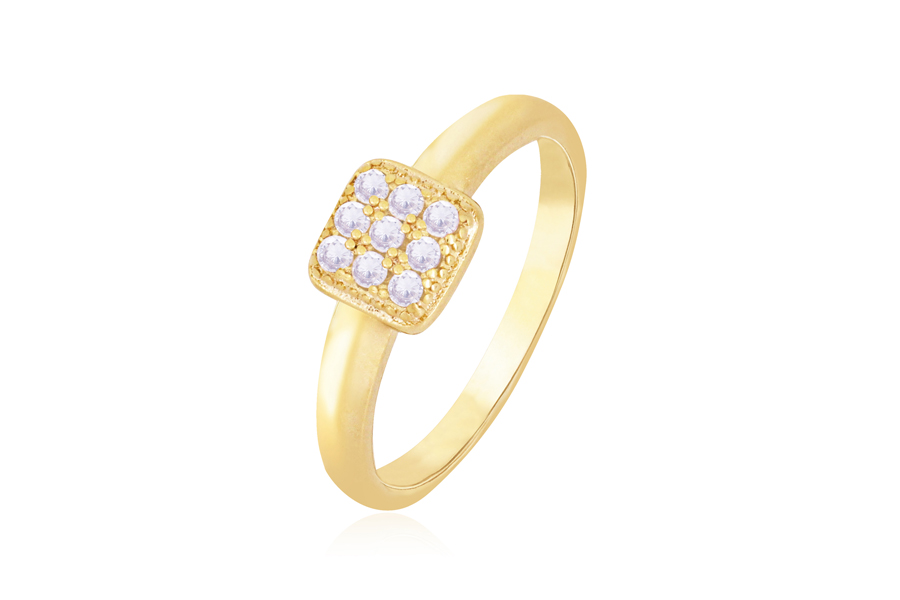 ANEL BANHADO EM OURO, SOLITÁRIO, ZIRCÔNIA QUADRADA 8mm, COM 235 ZIRCÔNIAS