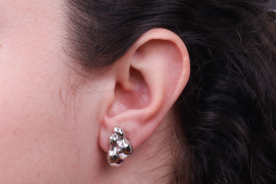 BRINCO BANHADO EM RÓDIO BRANCO, OVAL 25x22mm