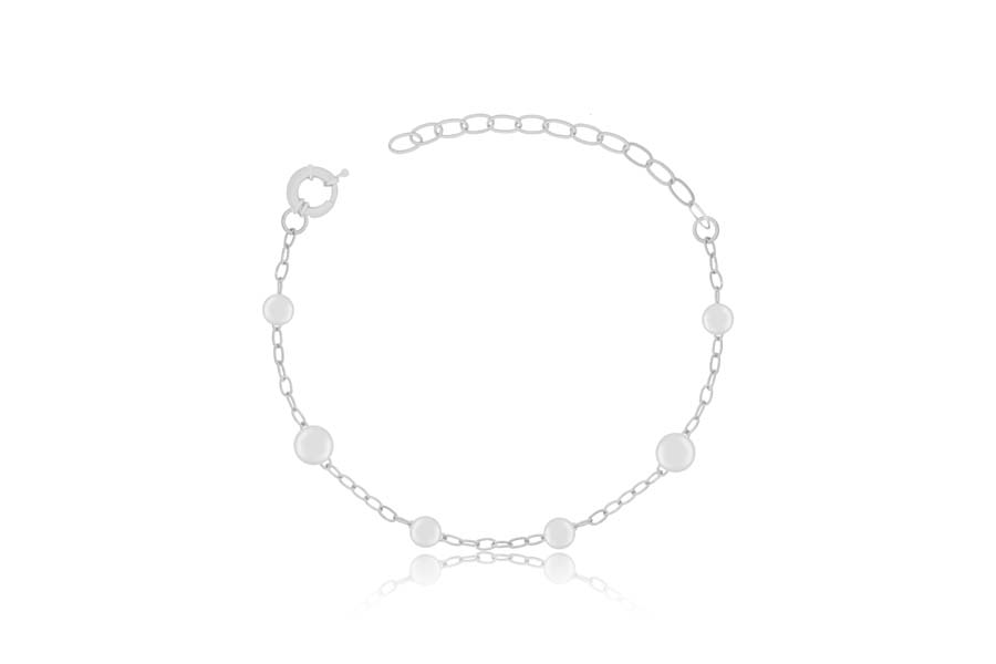 PULSEIRA BANHADA EM RÓDIO BRANCO, 4 FIOS, ELO OVAL 0,90mm, 16cm COMPRIMENTO, EXTENSOR 5cm COMPRIMENTO E PONTO DE LUZ 4mm