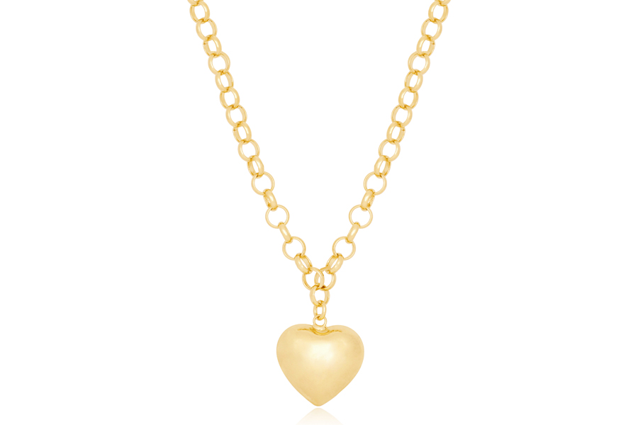 GARGANTILHA EM PRATA, ELO PORTUGUÊS 1,40mm, 40cm, EXTENSOR 5cm, CORAÇÃO 15mm LARGURA, COM BANHO DE RÓDIO BRANCO, COLEÇÃO AURA