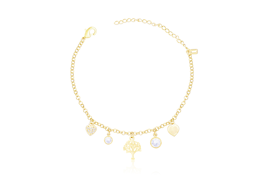 PULSEIRA BANHADA EM RÓDIO BRANCO, INFANTIL, ELO PORTUGUÊS 2,50mm, 14cm COMPRIMENTO, EXTENSOR 3cm COMPRIMENTO E ÁRVORE DA VIDA 17mm DIÂMETRO
