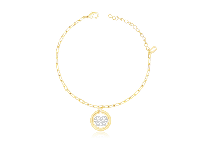 PULSEIRA BANHADA EM OURO, CORRENTE ELO PORTUGUÊS 2,50mm, 17cm COMPRIMENTO, EXTENSOR 5cm COMPRIMENTO E PESO 2,20g