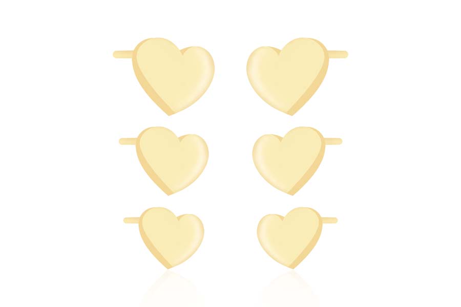 BRINCO BANHADO EM OURO, DOIS CORAÇÕES 9mm LARGURA