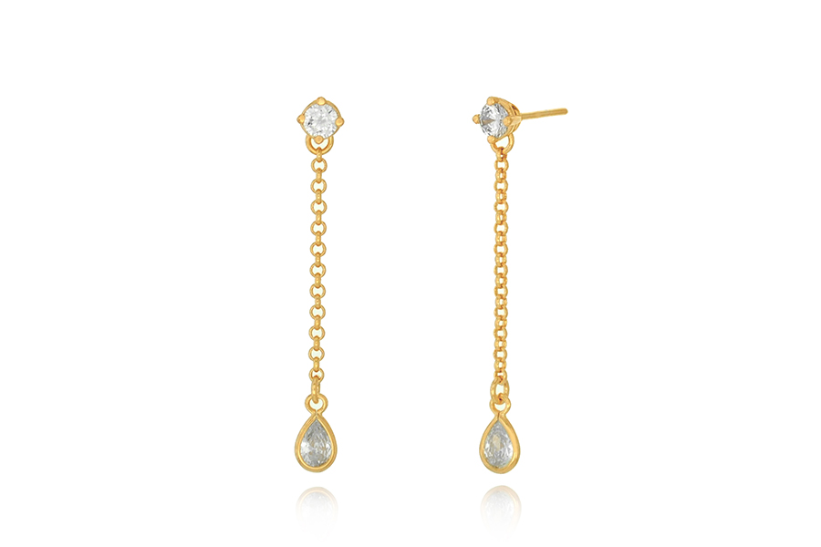 BRINCO EM PRATA, ZIRCÔNIA GOTA ARTICULADA, 32mm ALTURA