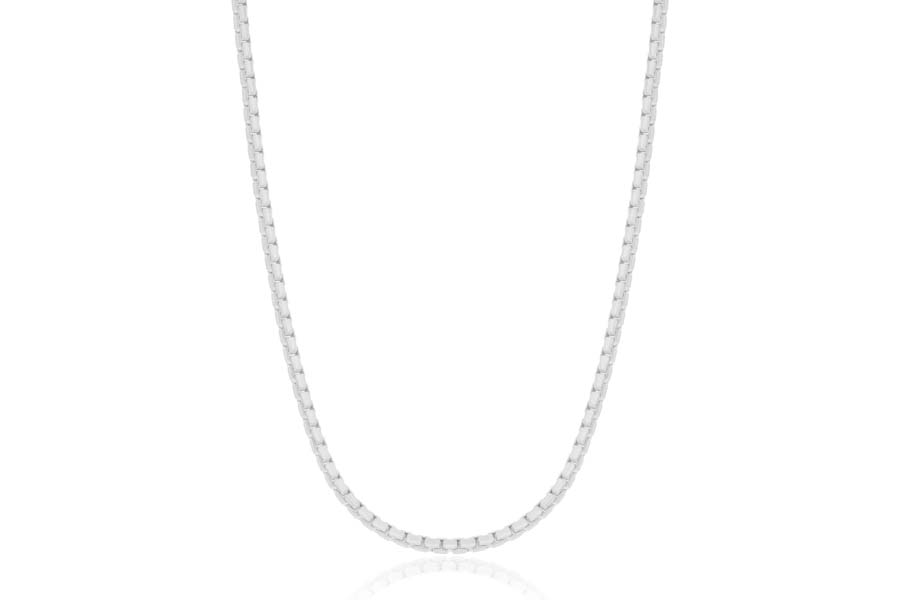 GARGANTILHA BANHADA EM RÓDIO BRANCO, PONTO DE LUZ 4mm, ELO VENEZIANA 0,80mm, 40cm COMPRIMENTO, EXTENSOR 5cm COMPRIMENTO, CRAVAÇÃO INGLESA