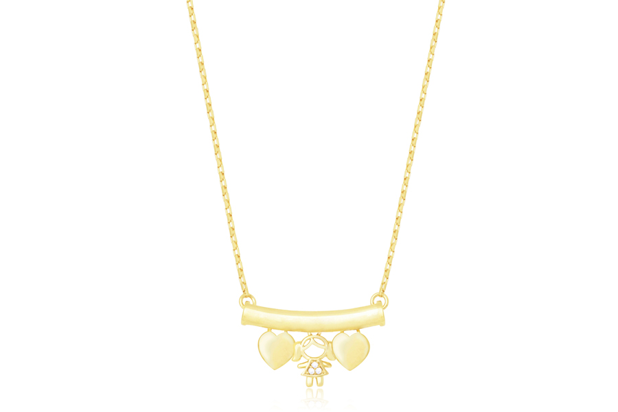 GARGANTILHA BANHADA EM OURO, ELO VENEZIANA 0,80mm, 45cm COMPRIMENTO, EXTENSOR 5cm COMPRIMENTO, MENINA 22mm ALTURA, COM ZIRCÔNIA VERDE
