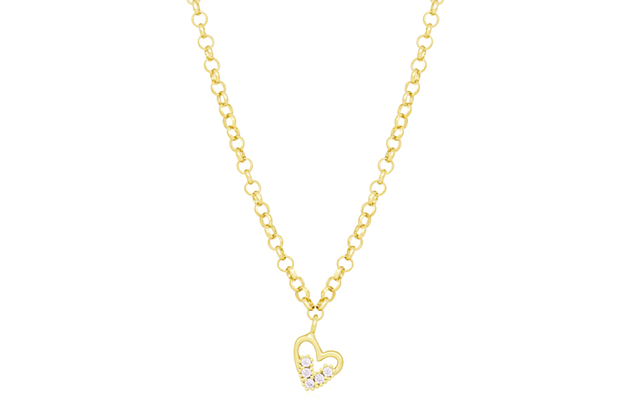 GARGANTILHA BANHADA EM PRATA LEVE, DUPLA, ELO 1,50mm ESPESSURA, PONTO DE LUZ 5mm E CORAÇÃO VAZADO 15,50mm LARGURA COM PATA