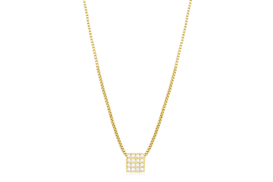 GARGANTILHA BANHADA EM OURO, ELO VENEZIANA 0,80mm, 40cm COMPRIMENTO, EXTENSOR 5cm COMPRIMENTO E TREVO 9mm LARGURA, COLEÇÃO ÍCONES