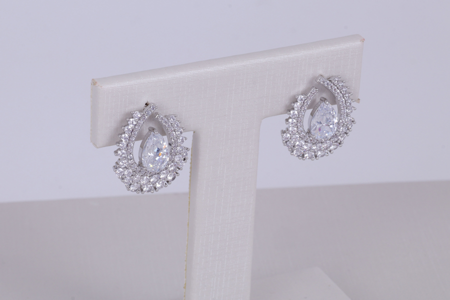 BRINCO EM PRATA, PINO CRAVEJADO, ZIRCÔNIA BRANCA REDONDA