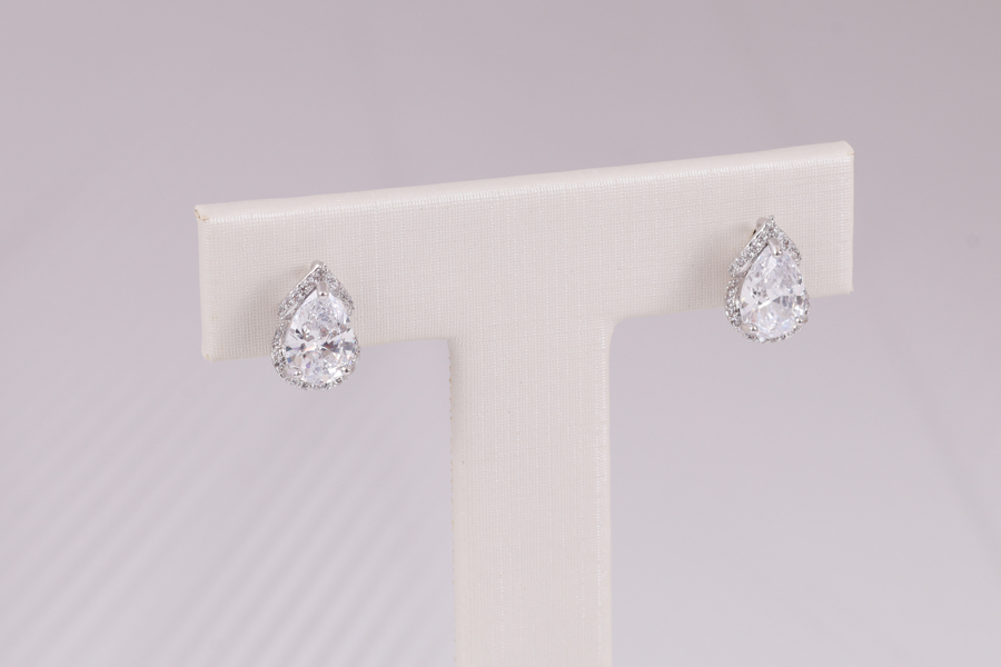 BRINCO BANHADO EM RÓDIO BRANCO, PONTO DE LUZ 4mm, CRAVAÇÃO INGLESA