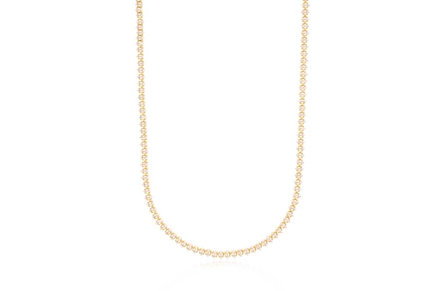 GARGANTILHA BANHADA EM RÓDIO BRANCO, PONTO DE LUZ 4mm, ELO VENEZIANA 0,80mm, 40cm COMPRIMENTO, EXTENSOR 5cm COMPRIMENTO, CRAVAÇÃO INGLESA
