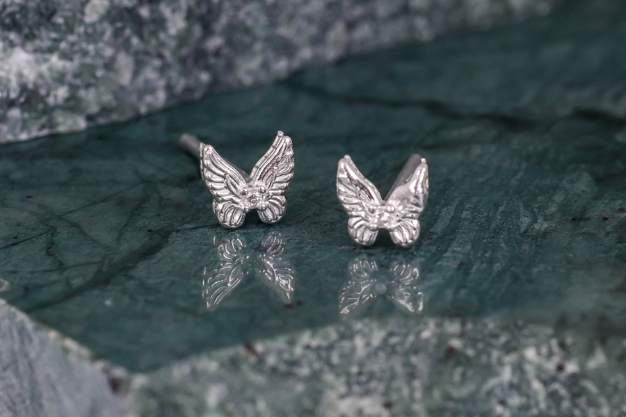 BRINCO EM PRATA, BORBOLETA COM 1 ZIRCÔNIA 4,60mm ALTURA, EM FILIGRANA