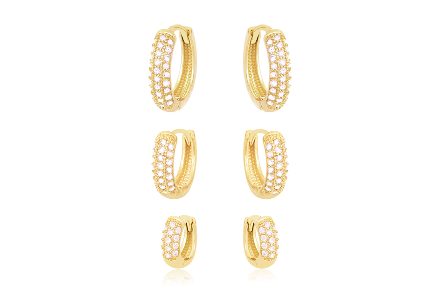 CONJUNTO EM PRATA, TRIO DE BRINCOS, PONTOS DE LUZ REDONDOS CRAVAÇÃO INGLESA 3mm, 4mm E 5mm DIÂMETRO