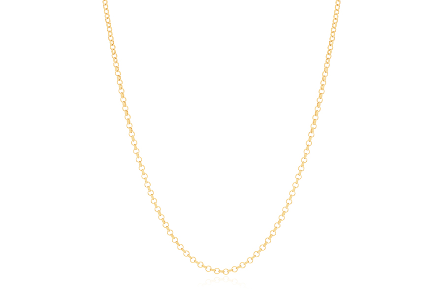 CORRENTE BANHADA EM OURO, ELO PORTUGUÊS 1,80mm, 45cm COMPRIMENTO, EXTENSOR 5cm COMPRIMENTO E PESO 3,40g