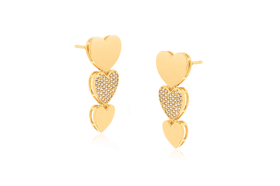 BRINCO EM PRATA, CORAÇÃO VAZADO E CRAVEJADO 14,50mm ALTURA